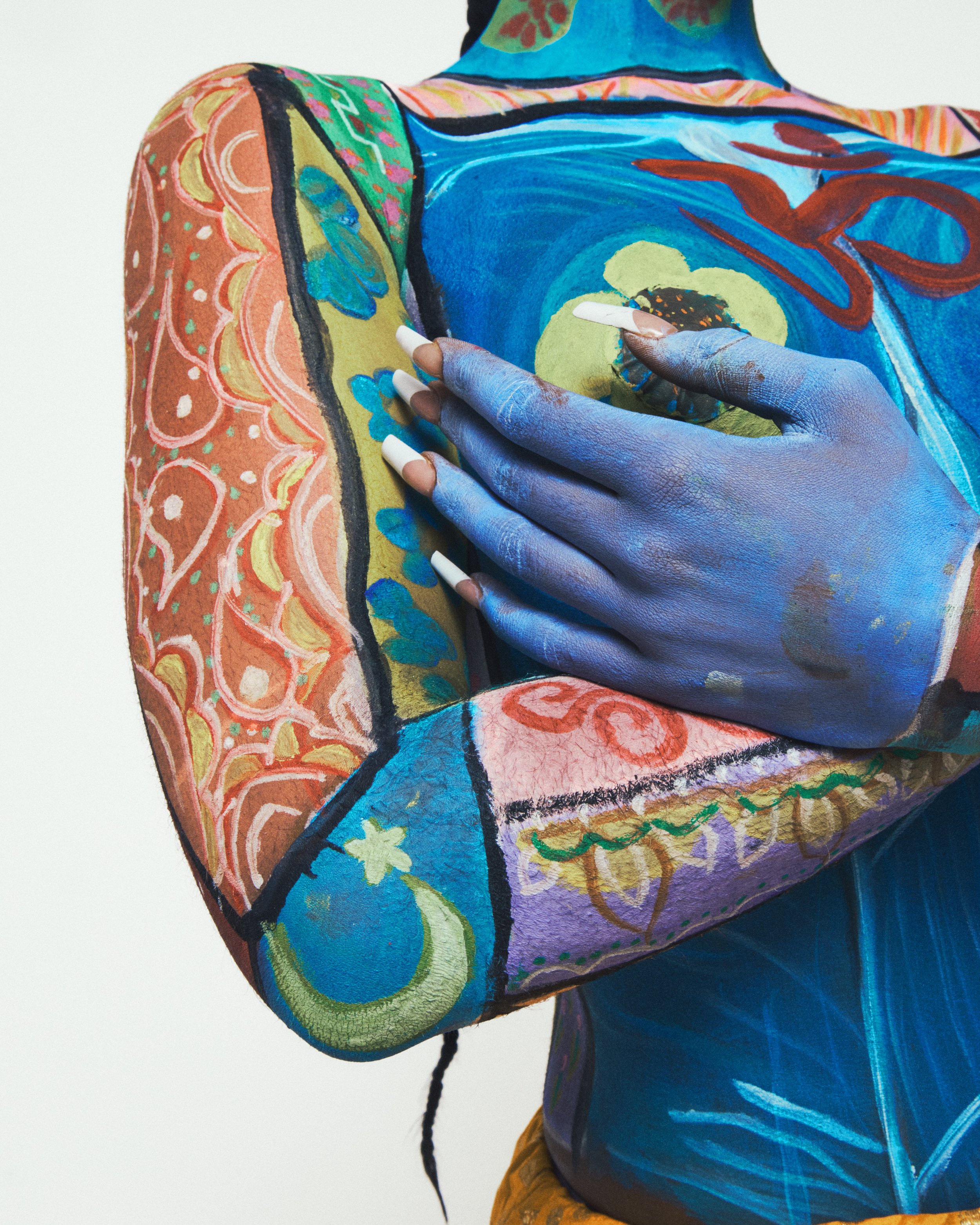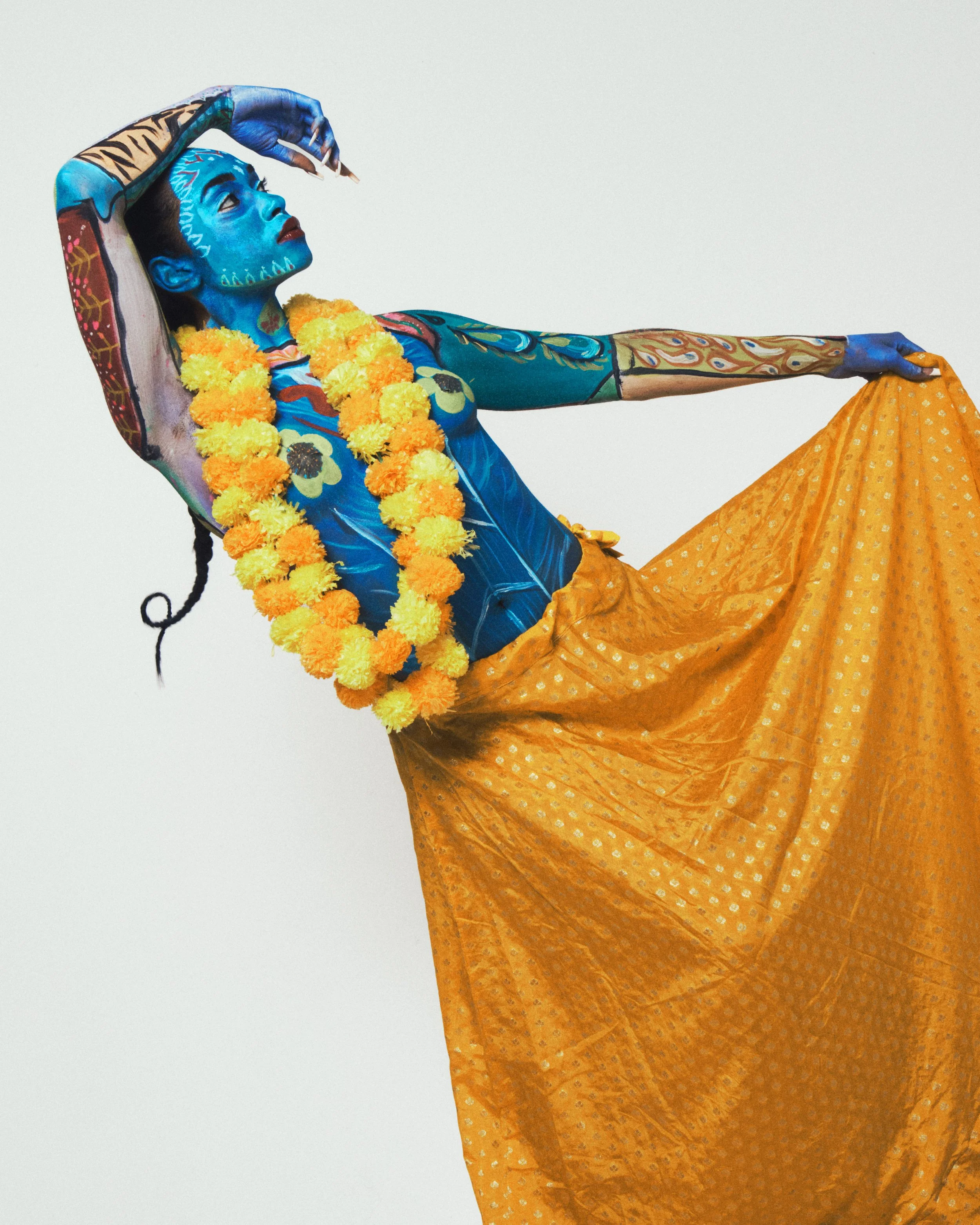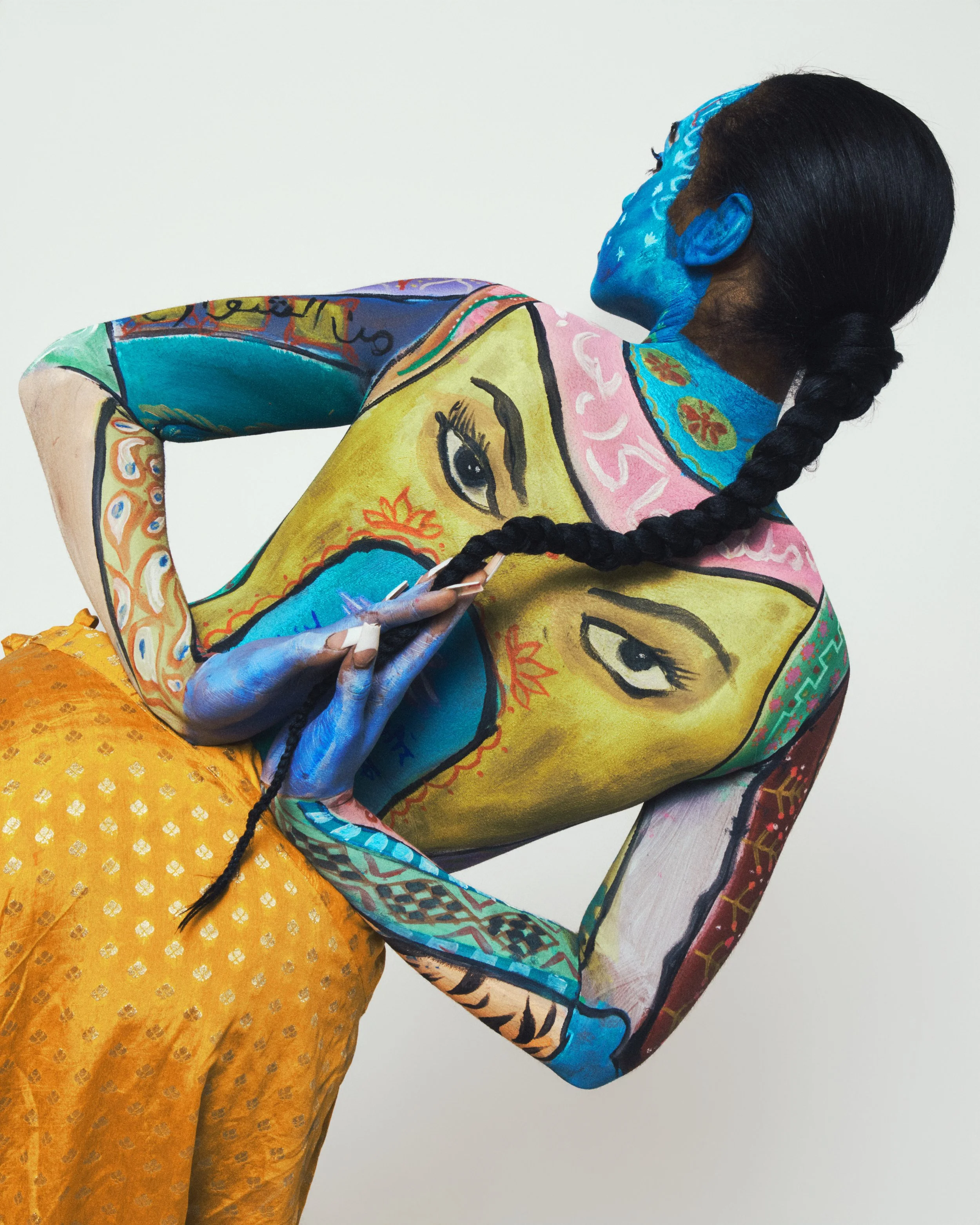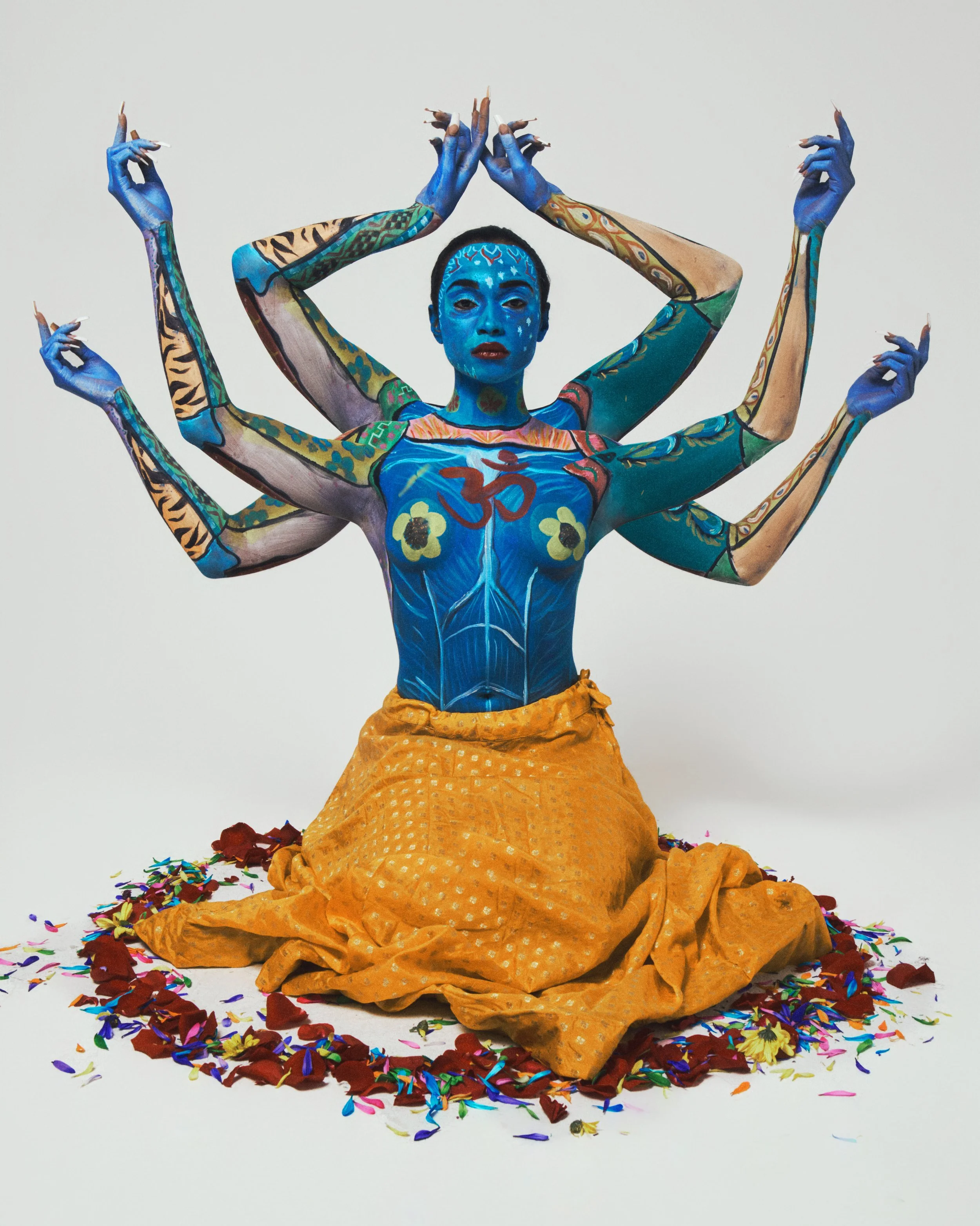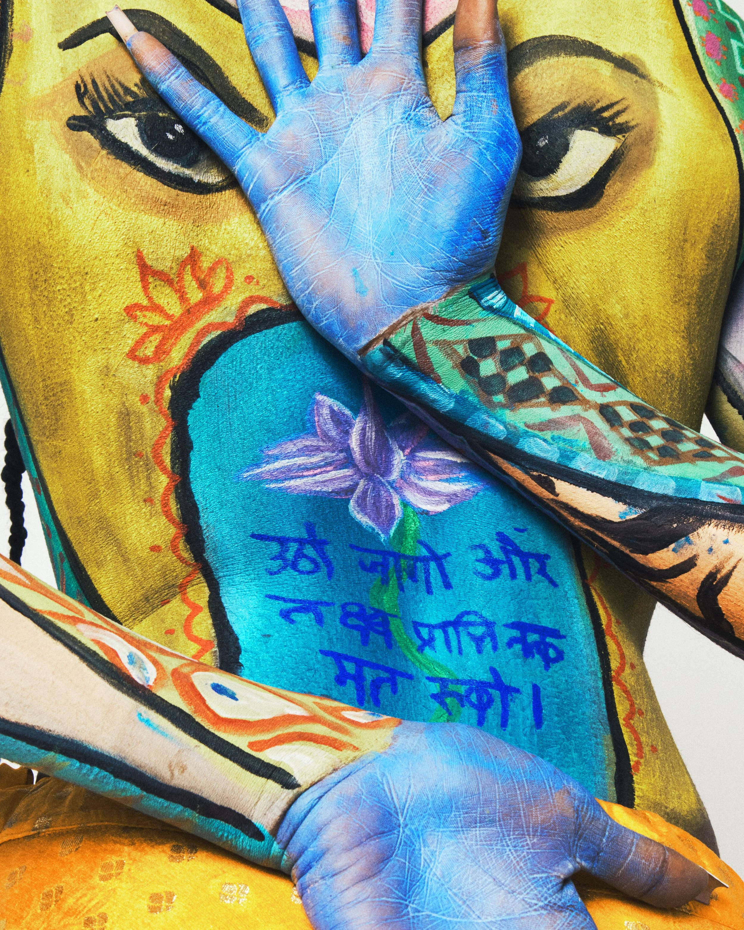 In our rendition of truck art, we took many influences from Pakistani, Indian, Islamic and Hindu culture. The classical floral patterns that are in all South Asian cultures. Eyes on the back of the woman’s body as a symbol of protection. Blue for serenity, infinity and godlike energy… and this is to represent the Divine Feminine.